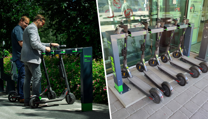 Bikeep offers docked based parking stations which are perfect for shopping centres, offices, leisure centres and gyms. Each station is practical. Your e-scooter can be locked via our APP or by using a contactless card. Each dock offers charging. A clever solution!